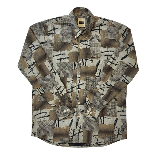 90s Vintage A La Mode Grey Abstract Cotton Shirt Men's Size Medium