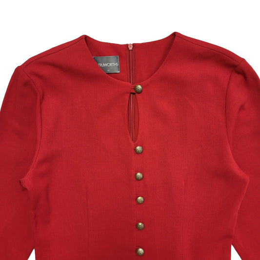80s Vintage Truworths Red Buttoned Keyhole Detail Dress Women's Size 6-8