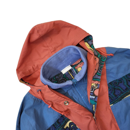90s Vintage Blue & Orange Zip & Snap Hooded Jacket Women's Size 18
