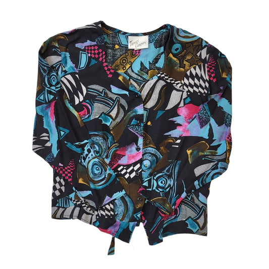 Three's Company 90s Vintage Black Blue 3/4 Sleeve Blouse Women's Size 14 Eu 42