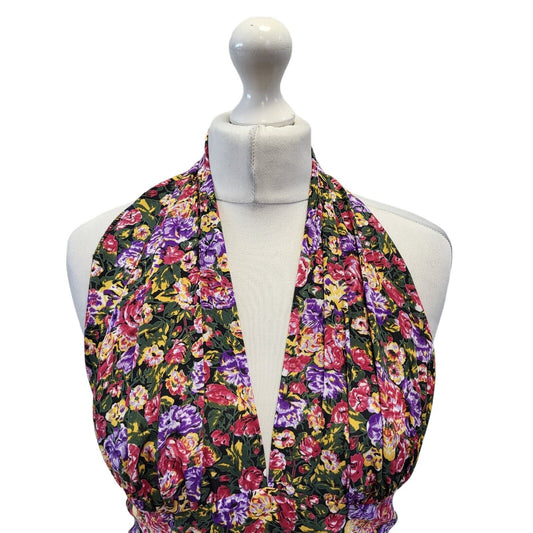 Tilers 90s Vintage Purple Floral Print Pleated Halterneck Dress Women's Size 10
