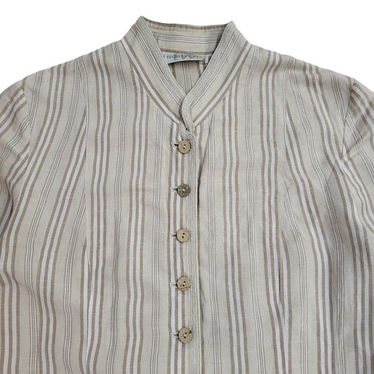 Today Woman 90s Beige Striped Long Sleeve Shirt Uk Women's Size 12