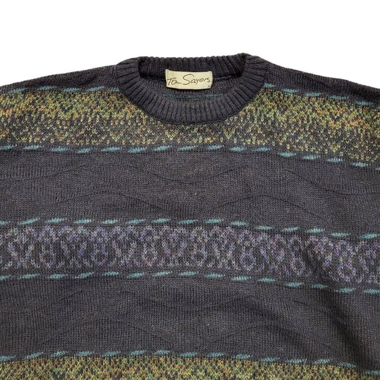 Tom Sayers Vintage 80s Black Blue Geometric Crew Neck Jumper Men's UK M