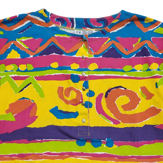 Together Vintage 90s Multicoloured Henley Short Sleeve T-Shirt Womens UK 16/18