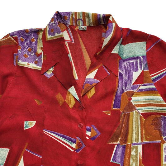Vintage 90's Red Short Sleeve Round Neck Womens Shirt UK Size 16