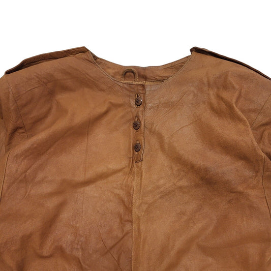 Vintage 80s Brown Leather Long Sleeve Daywear Dress Uk Women's Size 14