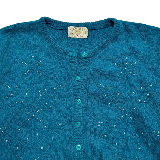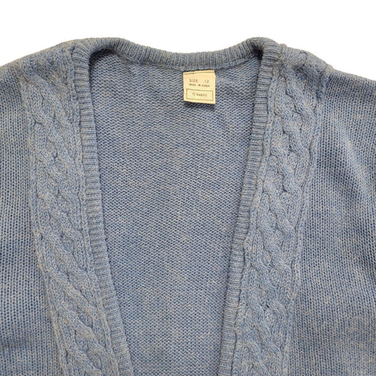 Vintage 80s Blue Knit Low V-Neck Cardigan UK Women's Size Large 12
