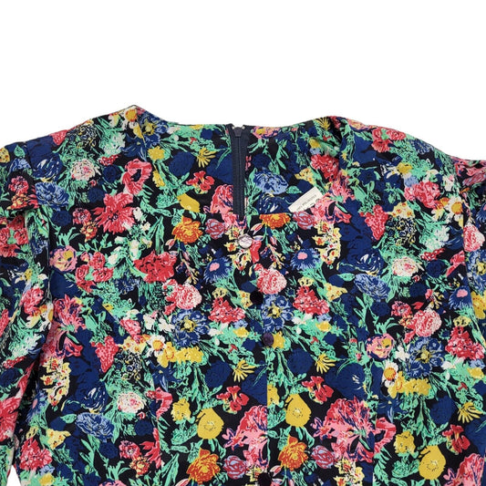 Vintage 80s Blue Pink Floral 3/4 Sleeve A-Line Dress Uk Women's Size 10