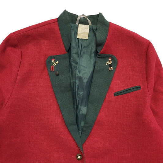 Vintage 80s Red Green Linen Jacket Uk Women's Size 14/16