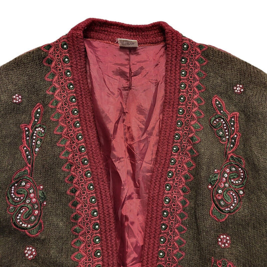 Vintage 80s Burgundy Open Front Wool Jacket Uk Women's Size 20/22