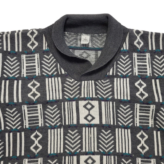Vintage 80s Grey & White Geometric Collared Jumper Men's UK Large