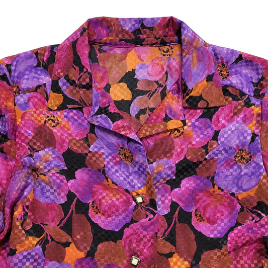 Vintage 80s Purple Pink Brown floral Collared Shirt Blouse Women's Uk XL 14