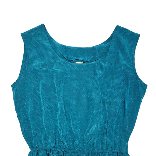 Vintage 80s Blue Sleeveless Evening Fit & Flare Dress Uk Women's Size 16