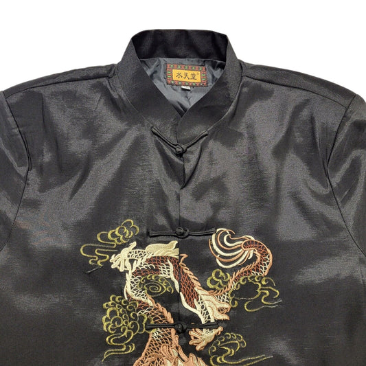 Vintage 80s Black Oriental Embroidered Jacket Uk Men's Size XL