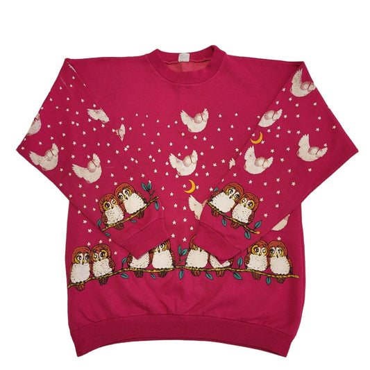 Vintage 80s Pink Owl print Sweatshirt Women's Size L