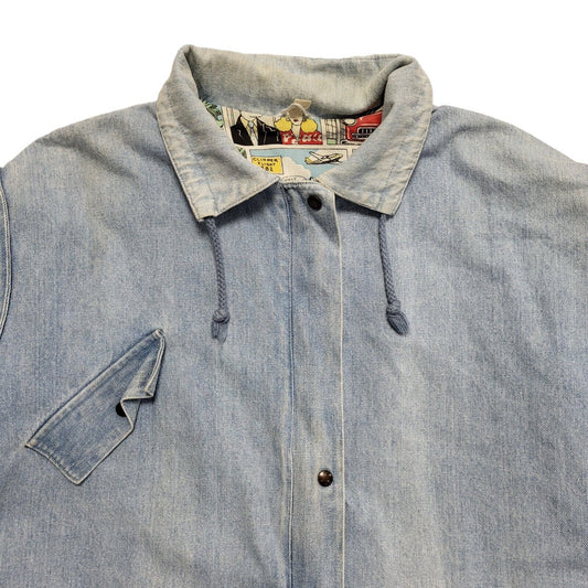 Vintage 80s Light Blue Zip & Snap Denim Jacket Uk Women's Size 16