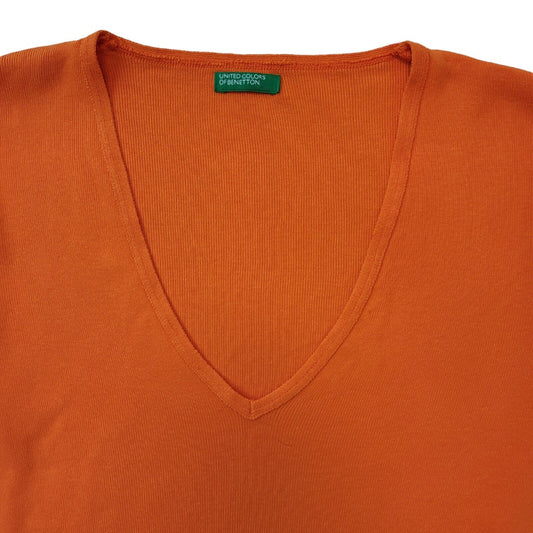 United Colors Of Benetton Y2K Vintage V-Neck Orange Jumper Womens UK 12