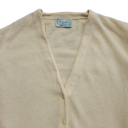 United Colors Of Benetton Vintage 80s Yellow Knit Cardigan UK Women's Size Large