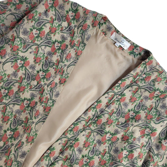 Urmoda 80s Floral Open Front Beige Short Sleeve Jacket Uk Women's Size Small