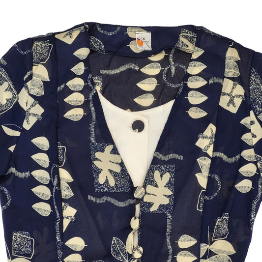 90s Vintage Blue Leaf Print Buttoned Daywear Midi Dress Women's Size S