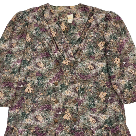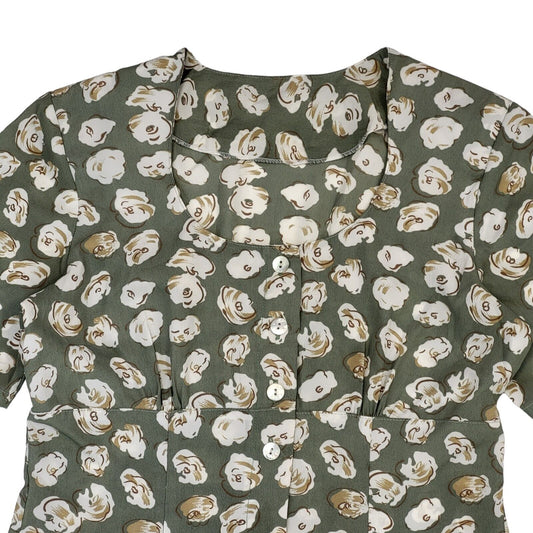90s Vintage Green Patterned Buttoned Daywear Dress Women's Size 12