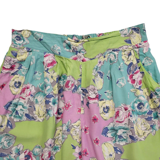 90s Vintage Green Blue Floral Shorts Uk Women's Size 18 W34-36