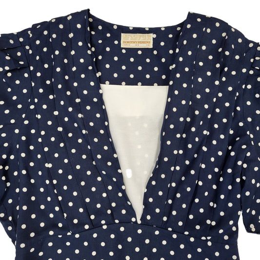 90s Vintage Dorothy Perkins Blue & White Polka Dot Daywear Dress Women's Size 16