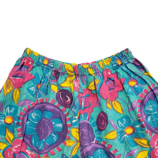 90s Vintage Blue Purple Floral Elasticated Shorts Uk Women's Size S W26