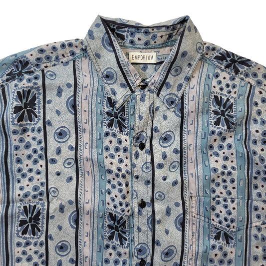 90s Vintage Emporium Blue Geometric Silk Shirt Men's Size M