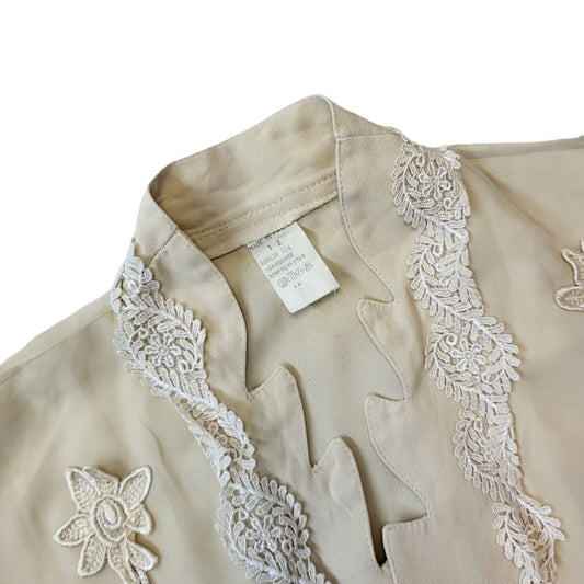 90s Vintage Cream Brown Floral Open Front Blouse Women's 16