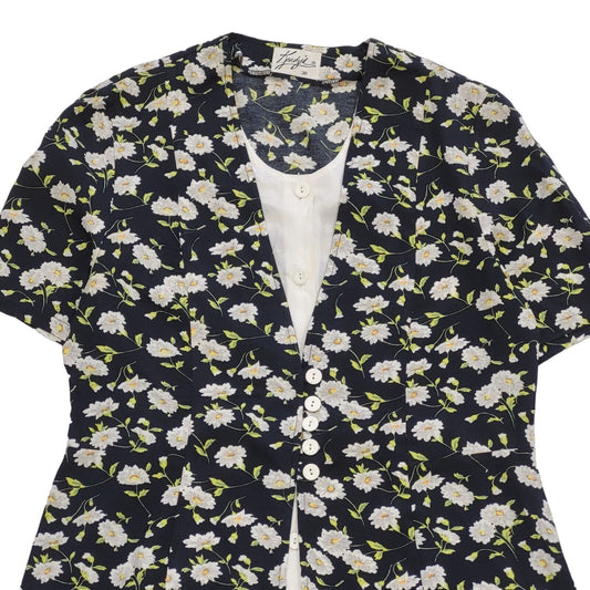 90s Vintage Kenzie Black & White Floral Button Daywear Dress Women's Size 10