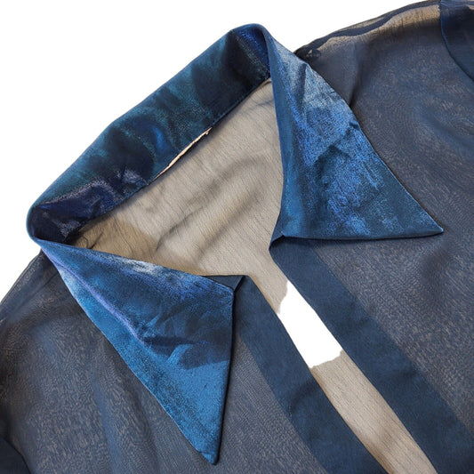 90s Vintage Blue Sheer Open Front Long Sleeve Blouse Women's 16
