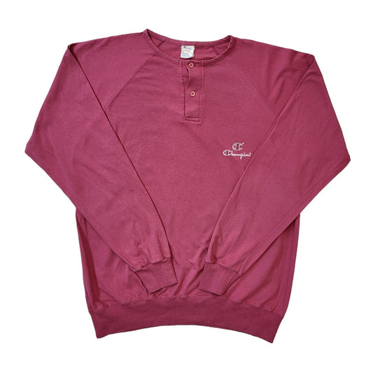 90s Vintage Champion Pink 1/4 Button Sweatshirt Jumper Men's Size Large