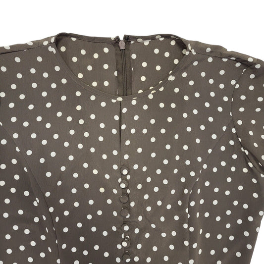 90s Vintage Brown & White Polka Dot Daywear Dress Women's Size 12