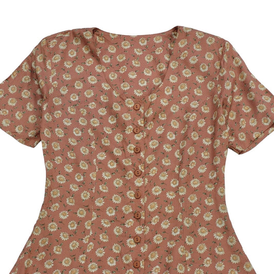 90s Vintage Essentials Peach Floral Daywear Dress Women's Size 12