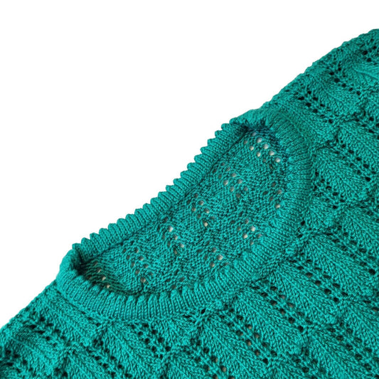 90s Vintage Green Crochet Round Neck Jumper Women's Size Small