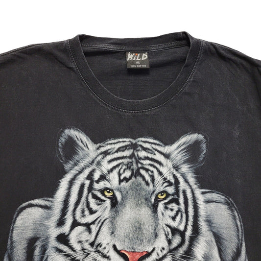 White Tiger Wild Black Vintage 90s Short Sleeve T-Shirt Uk Men's XL