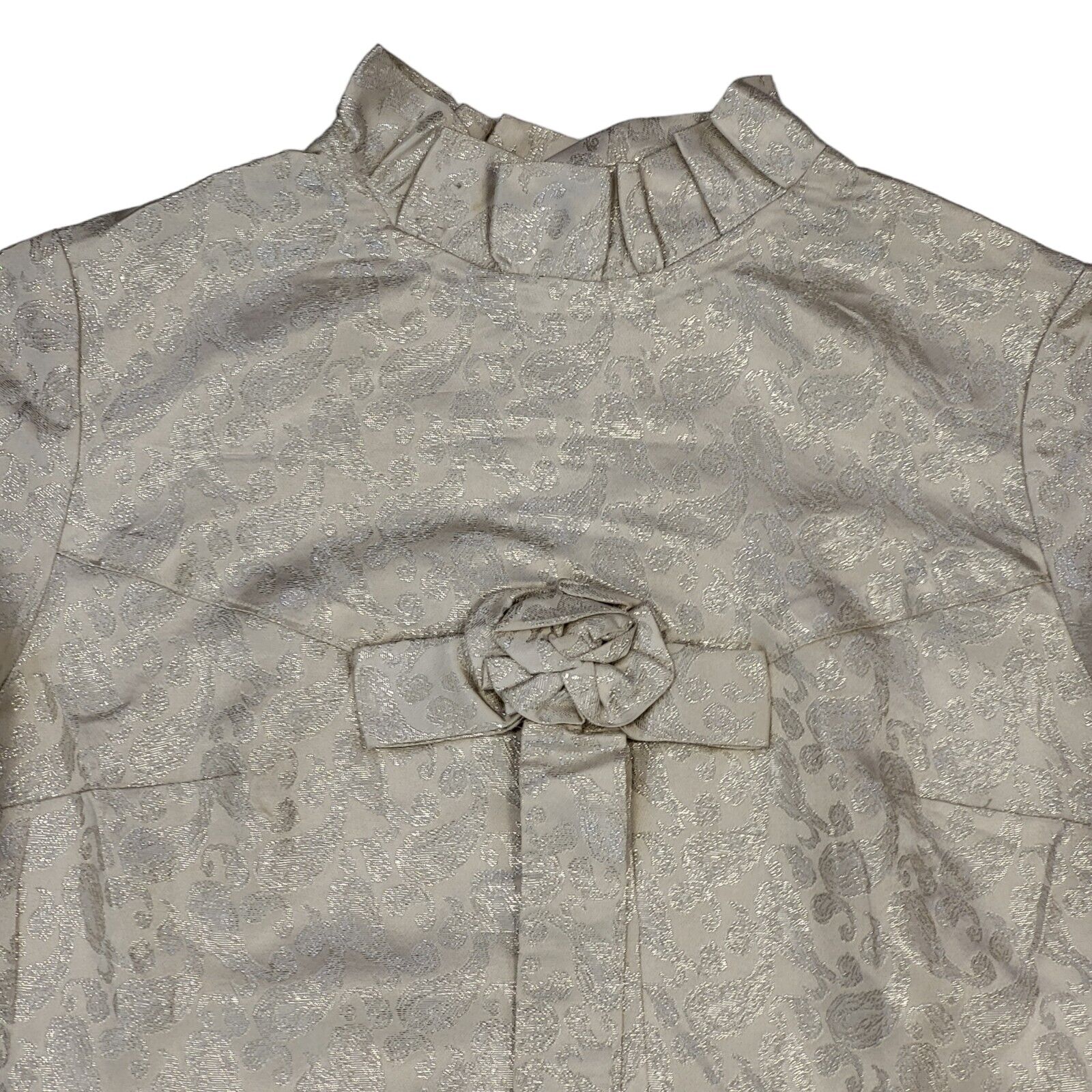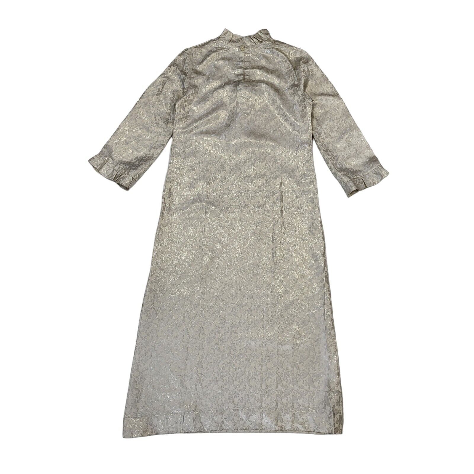 70s Vintage Beige & Silver Stitched Paisley Maxi Dress Women's Size 14.