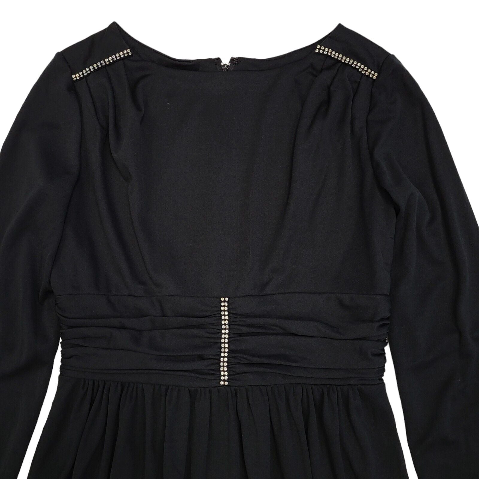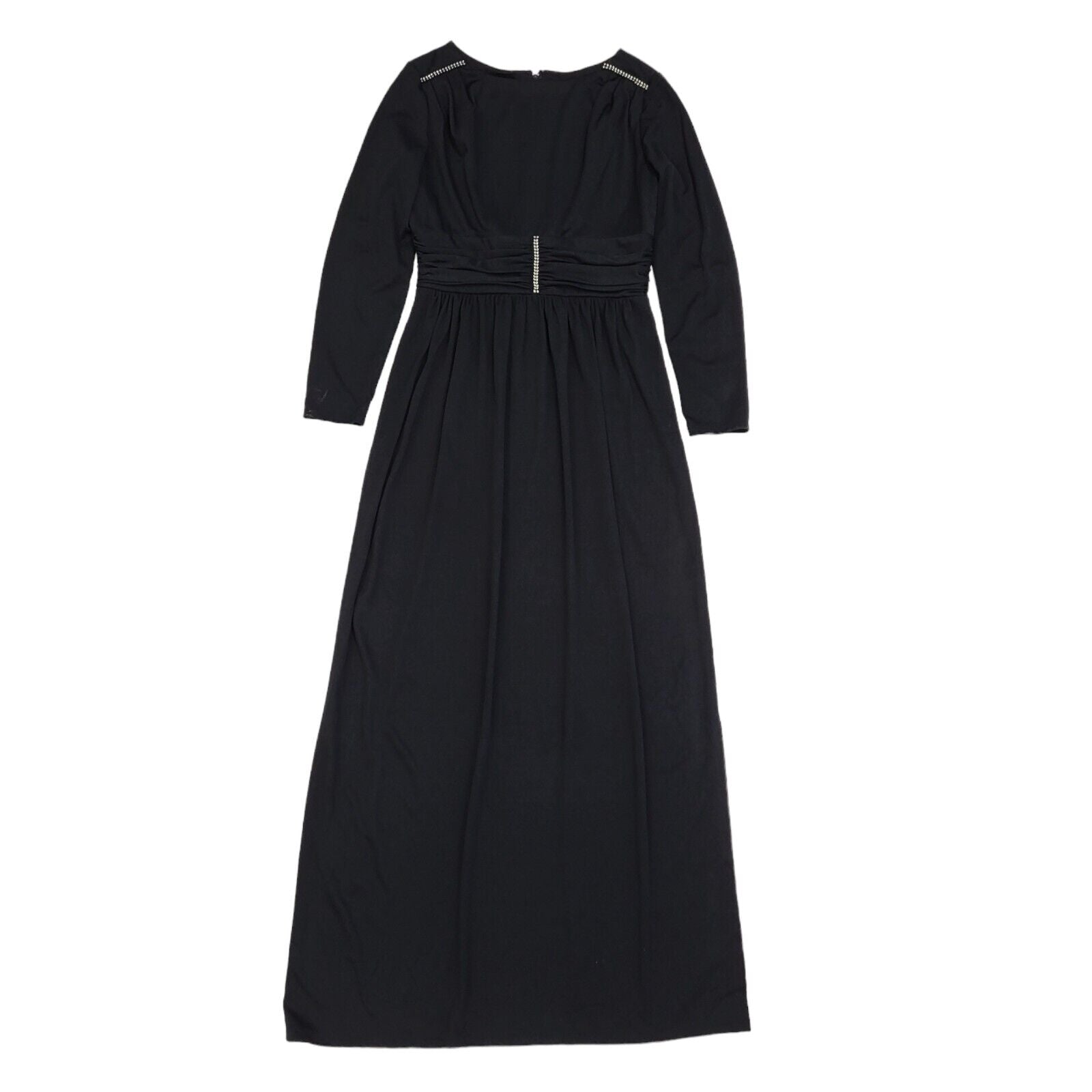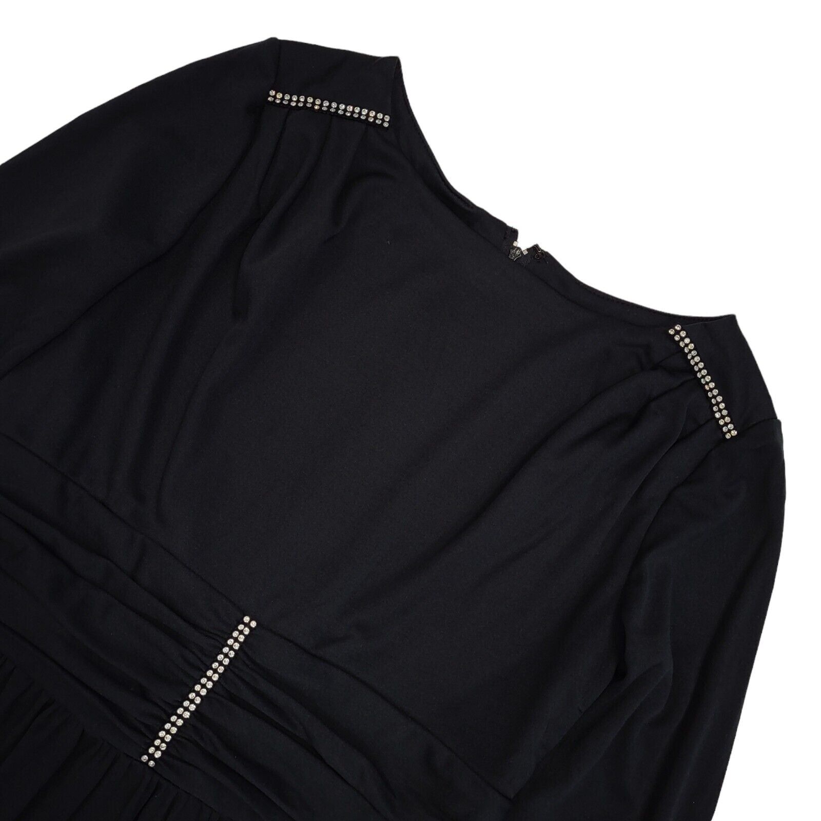 70s Vintage Black Boat Neck Diamante Evening Maxi Dress Women's 10 (us 14)