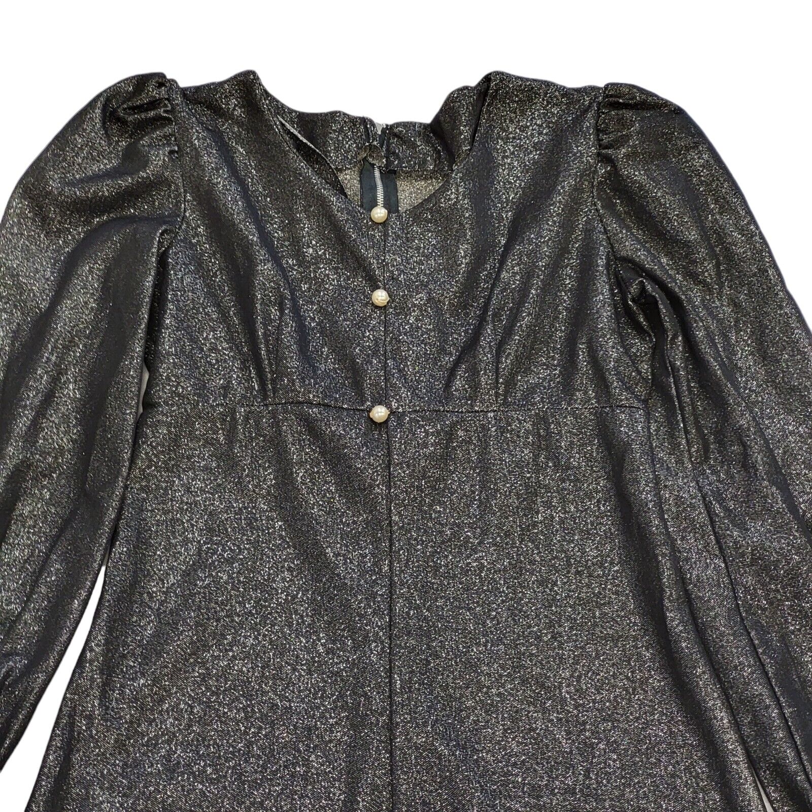 70s Vintage Black Sparkly Buttoned Balloon Sleeve Maxi Dress Women's Size 10