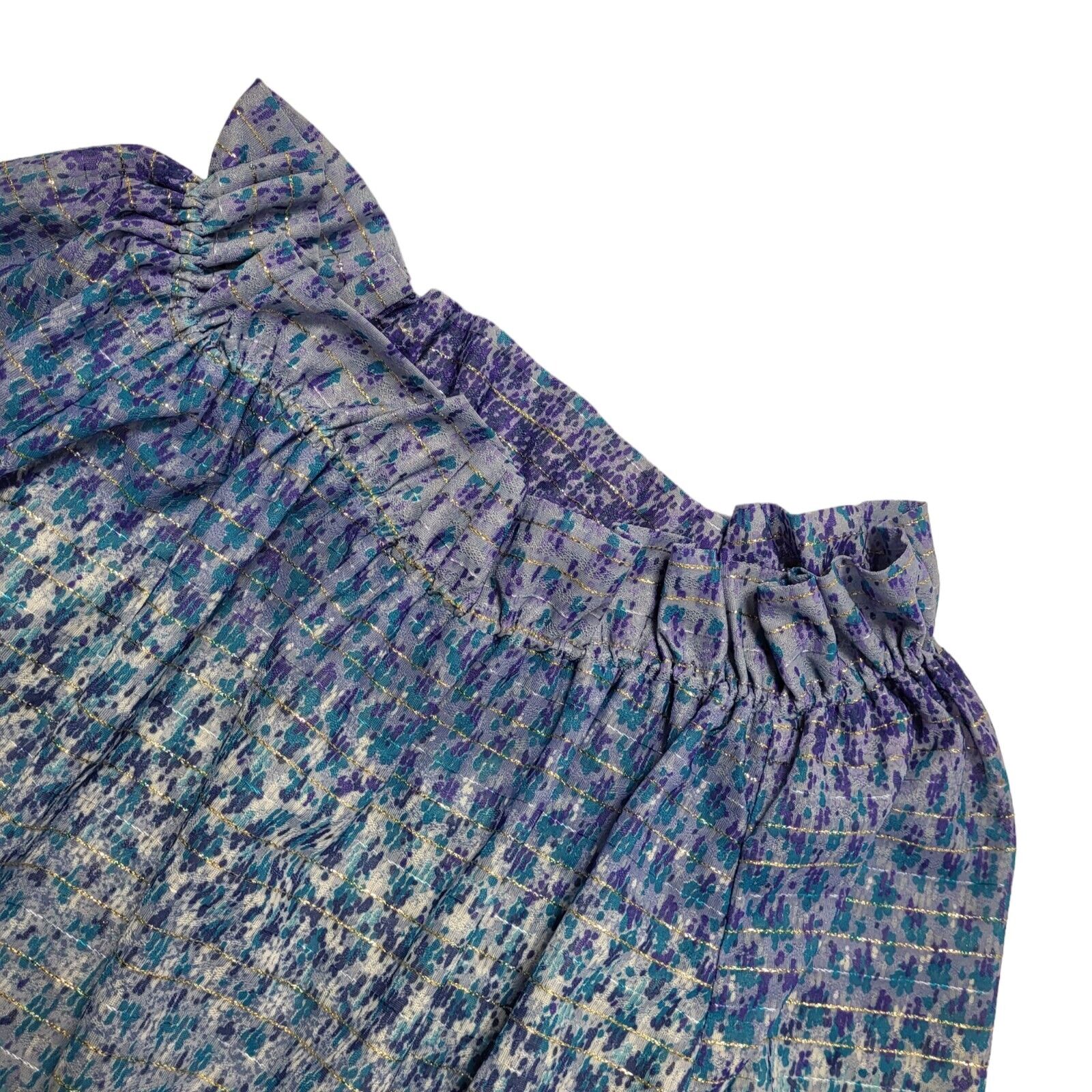70s Vintage Blue Sparkly Striped Off Shoulder A-Line Daywear Dress Women's 12-14