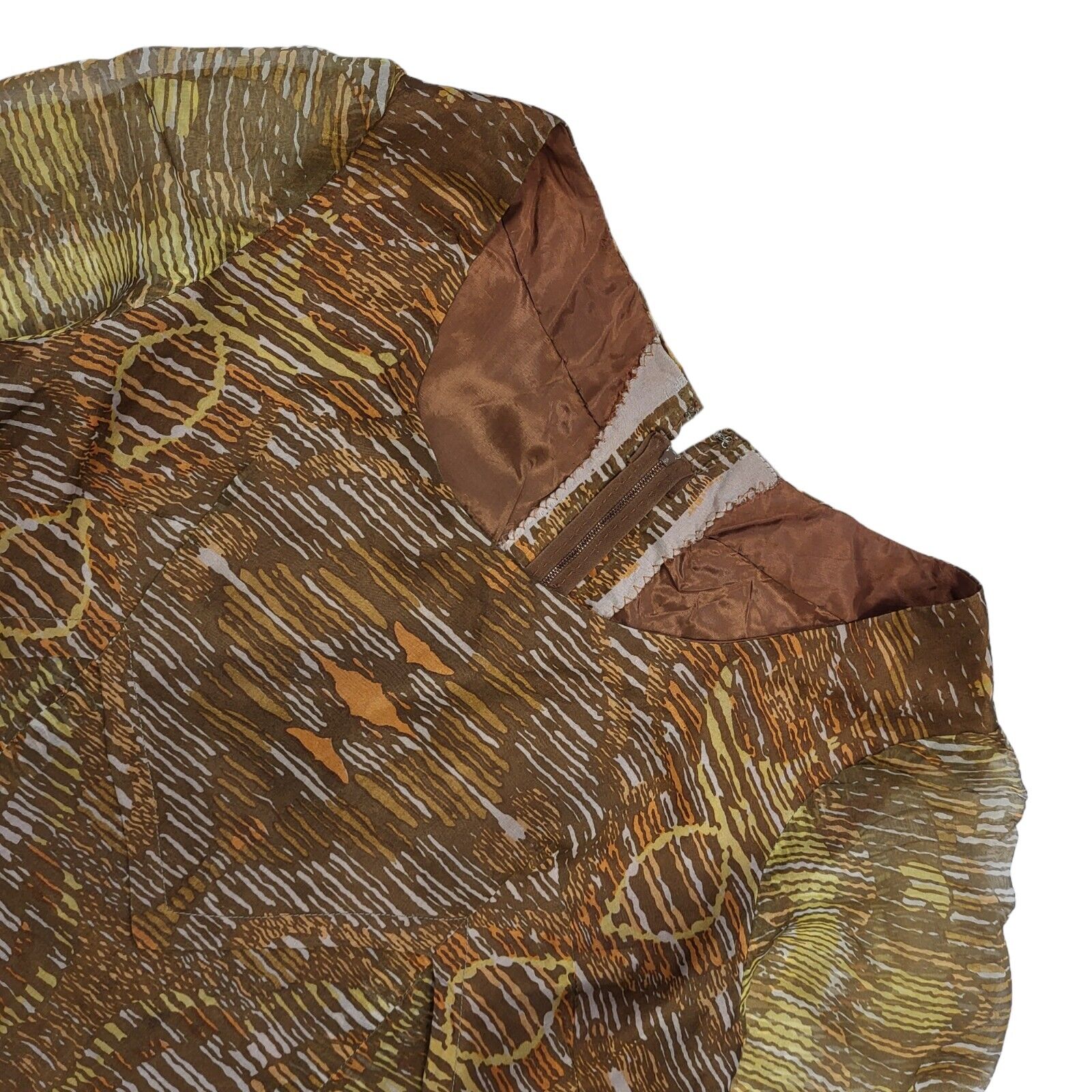 70s Vintage Brown Abstract Patterned Long Sleeved Lined Maxi Dress Women's 10.