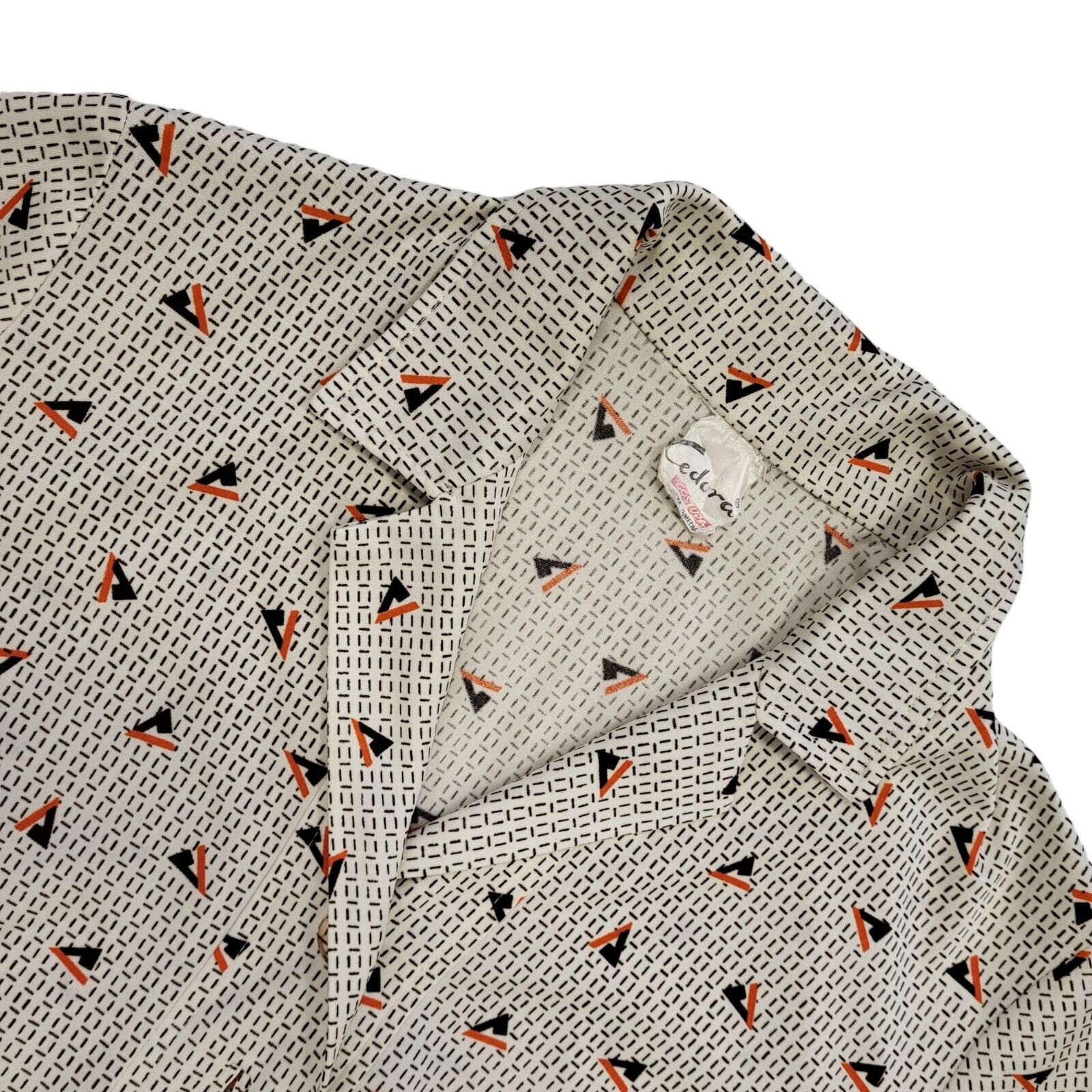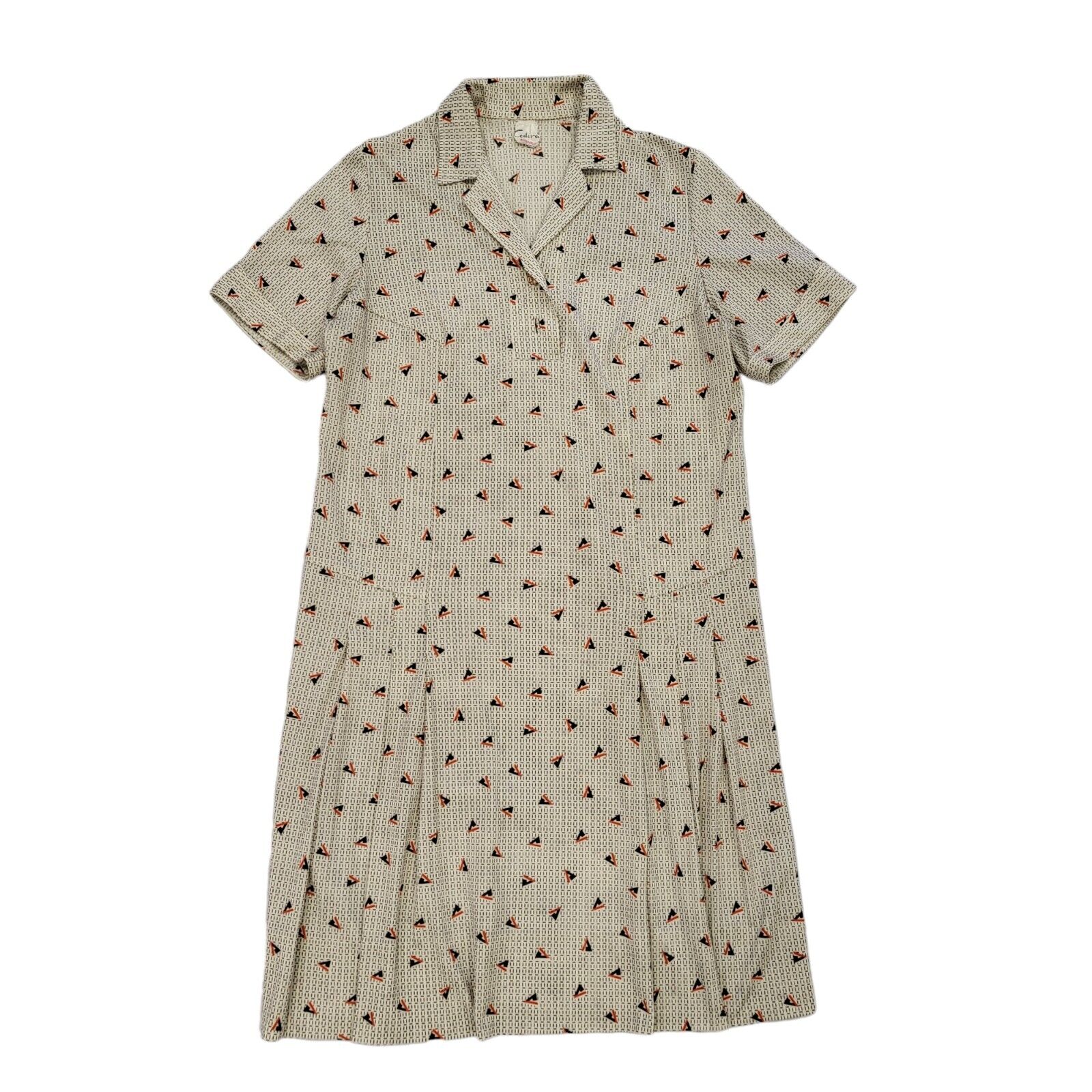 70s Vintage Patterned Collared Shift Daywear Dress Women's 16.