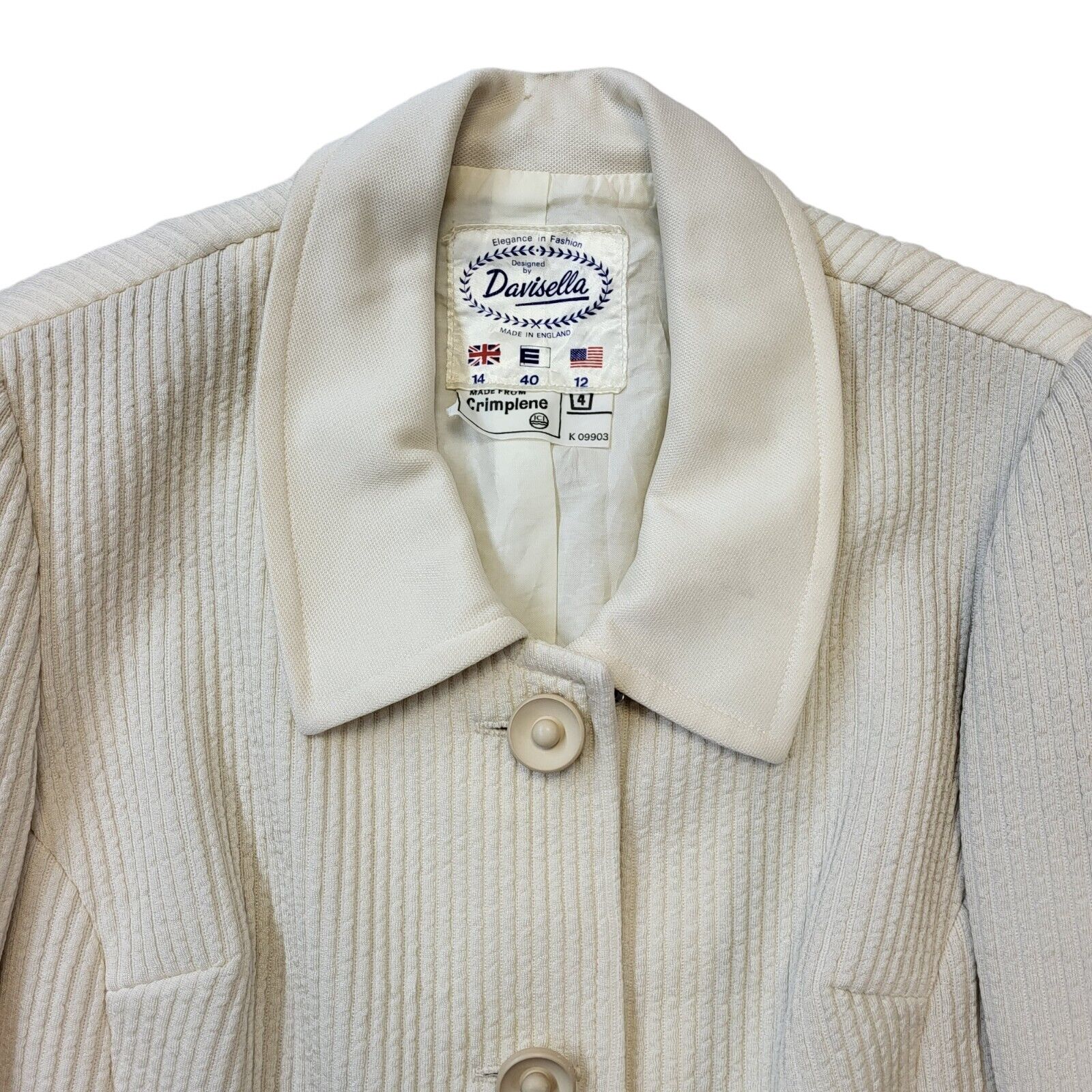 70s Vintage Davisella Cream Jacket & Dress Women's Size 14 Eu 42