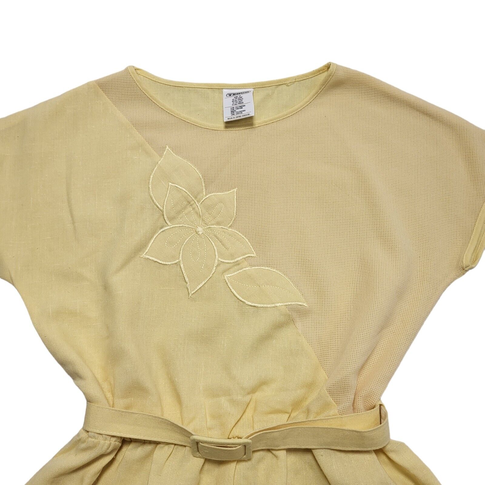 70s Vintage Tesco Yellow Belted Fit & Flare A-Line Dress Women's 12