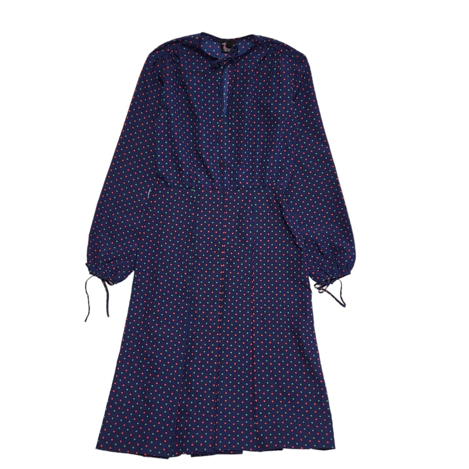 70s Vintage Vanidas Navy Polka Dot Daywear Dress Women's 10
