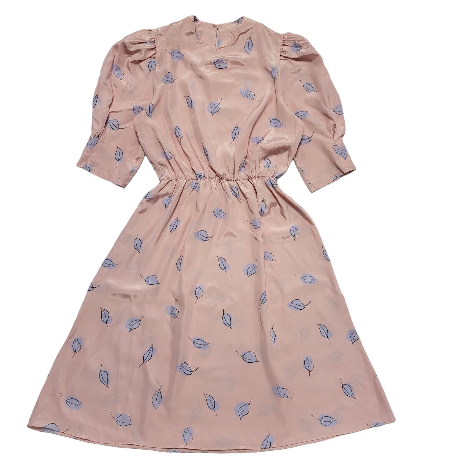 80s Purple Patch Vintage Pink Lilac Leaf A-Line Daywear Summer Dress Women's 12