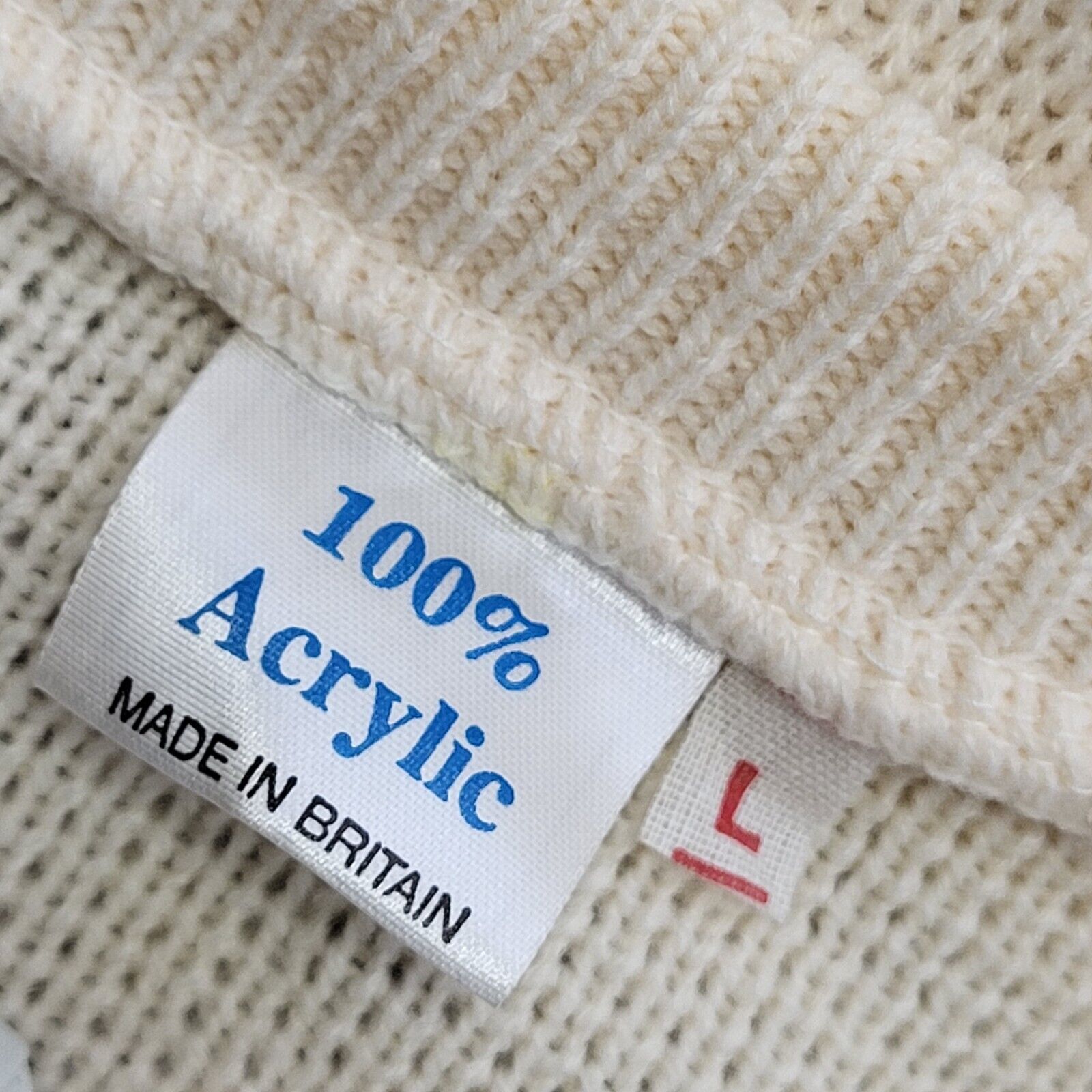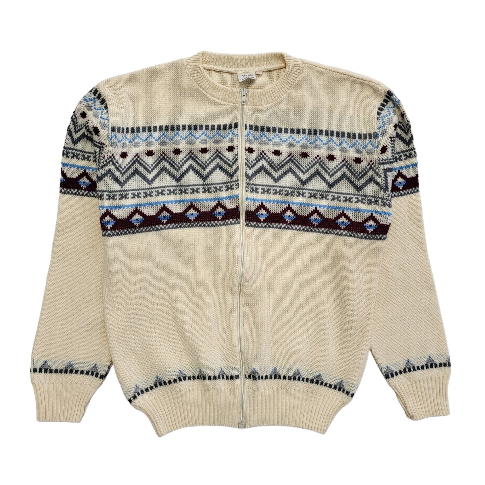 80s Vintage Cream & Brown Zipped Cardigan Uk Women's Size Large