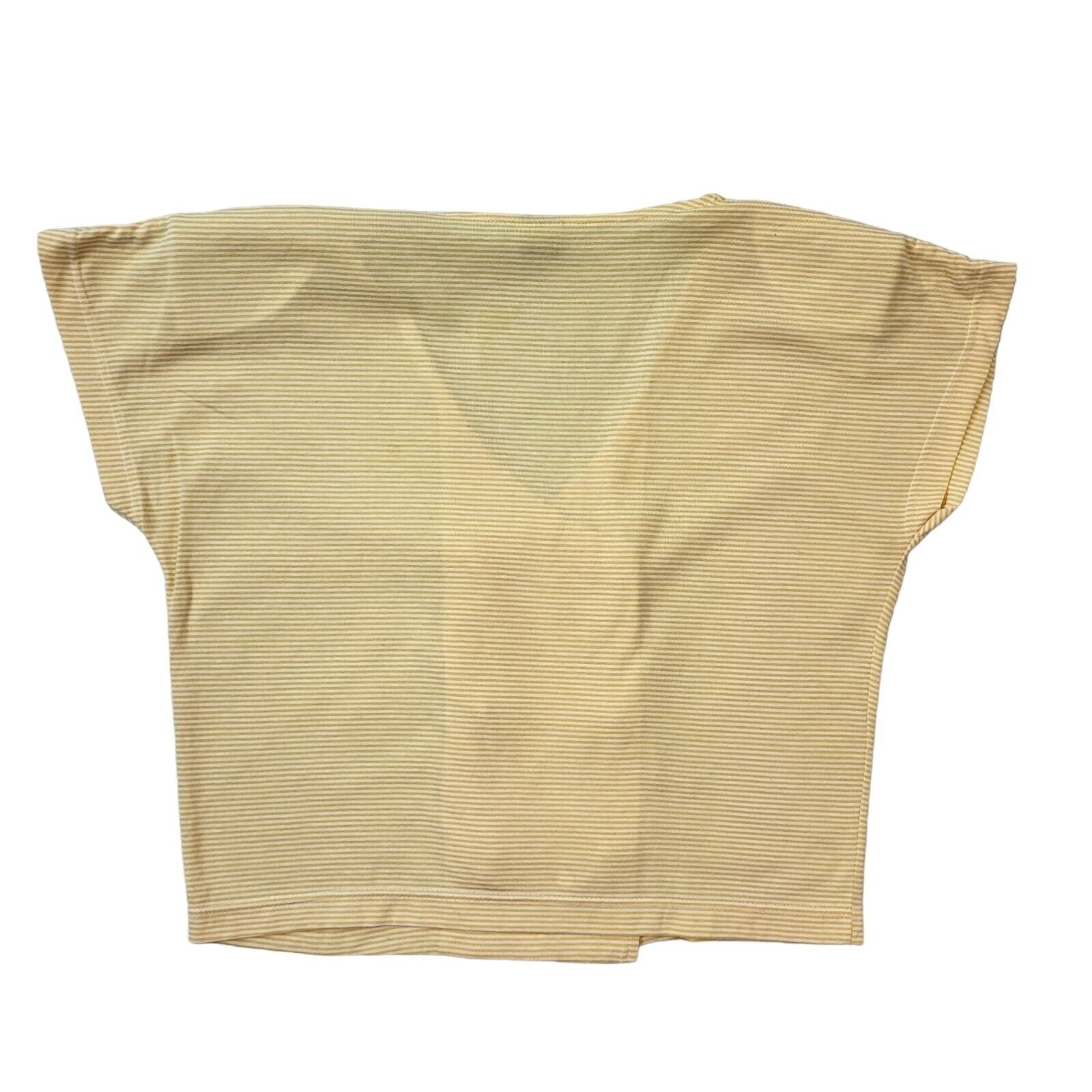 80s Vintage Yellow Striped Short Sleeve Button-Up Blouse Women's M