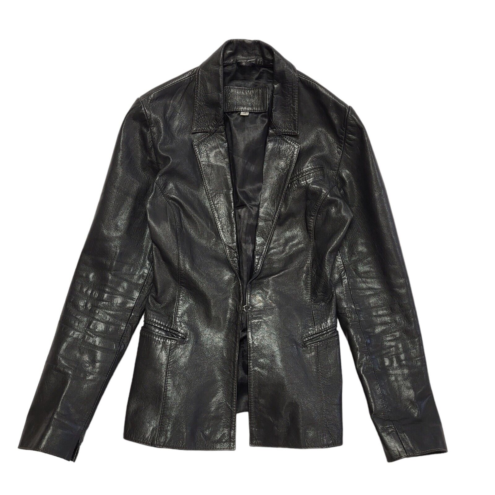 90s Vintage Black One Button Leather Jacket Uk Women's Size 10